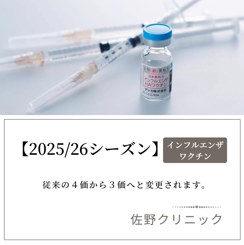 いつも佐野クリニックのコラムをご覧いただき、誠にありがとうございます。【2025/26】インフルエンザワクチン株についてのお話です。これまでのインフルエンザワクチンは、A型2株(H1N1、H3N2)とB型2株(ビクトリア […]