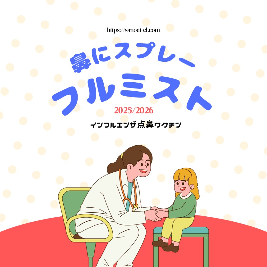 いつも佐野クリニックのコラムをご覧いただき、誠にありがとうございます。インフルエンザ点鼻ワクチン「フルミスト」についてのお話です。フルミストとは2023年に国内で薬事承認された経鼻弱毒生インフルエンザワクチンです。フルミ […]
