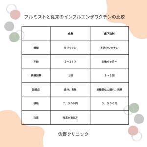 フルミストの接種を検討している方は、佐野クリニックへご相談ください。