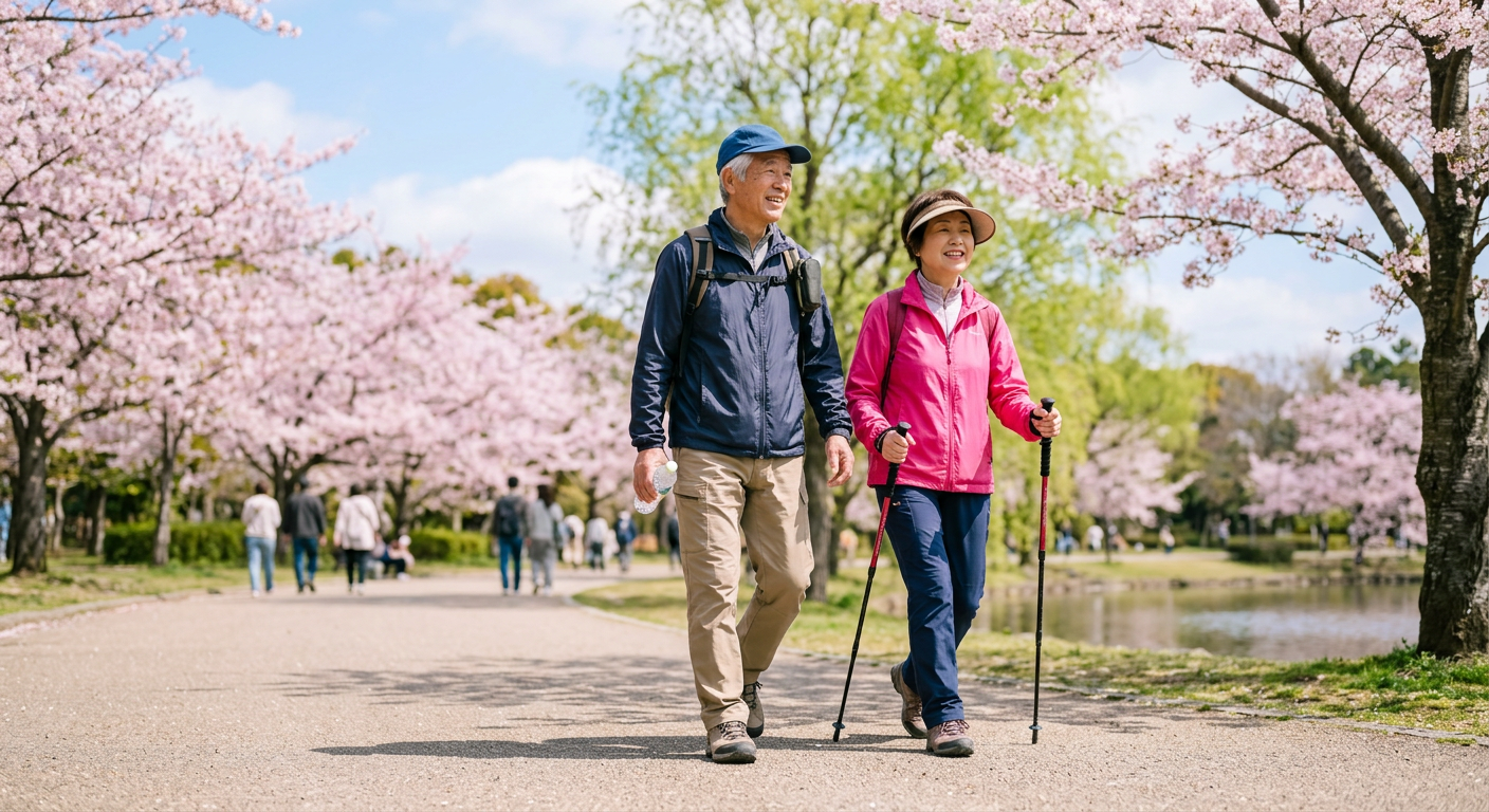 春の柔らかな日差しの中で、まずは近所の公園を15分歩くことから始めてみませんか?